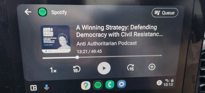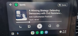 In the past month or so, as Jason and I have continued our quest to absorb antifascist content ahead of the second inauguration of Donald Trump, I have become increasingly familiar with Scot Nakagawa, an "activist-organizer," as he puts it on Linked In, with "35+ years of experience in tracking, analyzing, and mounting responses to vigilante white supremacist and white nationalist groups and the evangelical rightwing." Yeah, so Scot's a badass. He's also the cohost of Anti Authoritarian podcast, as I discovered when Jason sent me this picture from the road.